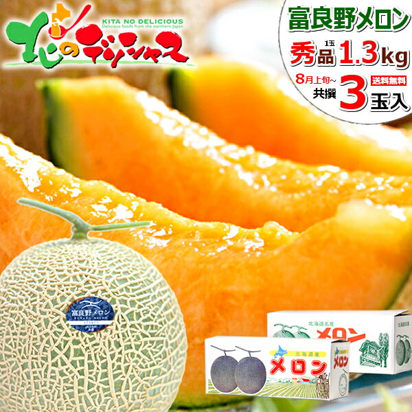 【出荷中】残暑見舞い ギフト 富良野メロン 3玉 (共撰/秀品/1玉 1.3kg) フルーツ メロン 赤肉メロン ふらのメロン JAふらの 3大産地 夏ギフト お盆 お供え 敬老の日 贈り物 プレゼント 季節限定 通販 人気 北海道 送料無料 お取り寄せグルメ