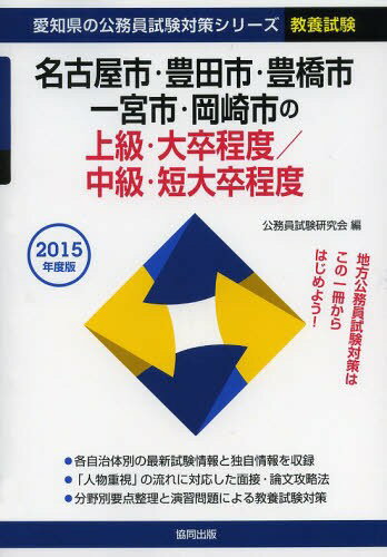 | 名古屋市・豊田市・豊橋市・一宮市・岡崎市の上級・大卒程度/中級・短大卒程度 教養試験 2015年度版 (愛知県の公務員試験対策シリーズ)[本/雑誌] (単行本・ムック) / 公務員試験研究会/編 | |