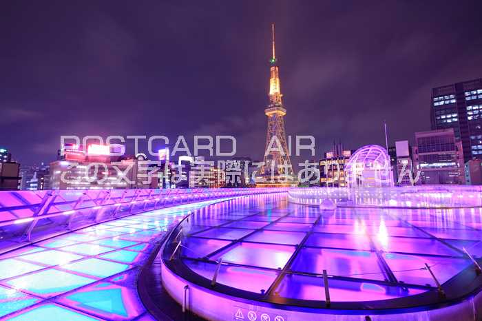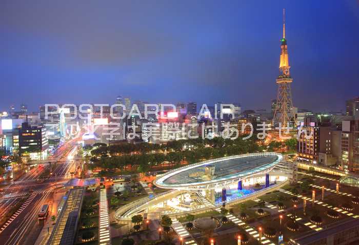 【日本の風景ポストカードAIR】愛知県名古屋テレビ塔とオアシス21の夜景のはがきハガキ葉書 撮影/kazukiatuko