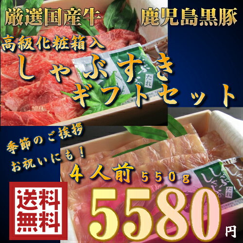 | 【 国産牛 鹿児島黒豚 】 しゃぶしゃぶ すき焼き ギフトセット [4人前550g](選べる部位とタレ) 肩ロース他《 化粧箱 》《 送料無料 》 ( 群馬県産 牛肉) あす楽 鍋 祝 景品 ギフト 贈答 肉 bbq アウトドア キャンプ 激安 セール 訳あり ではございません | |