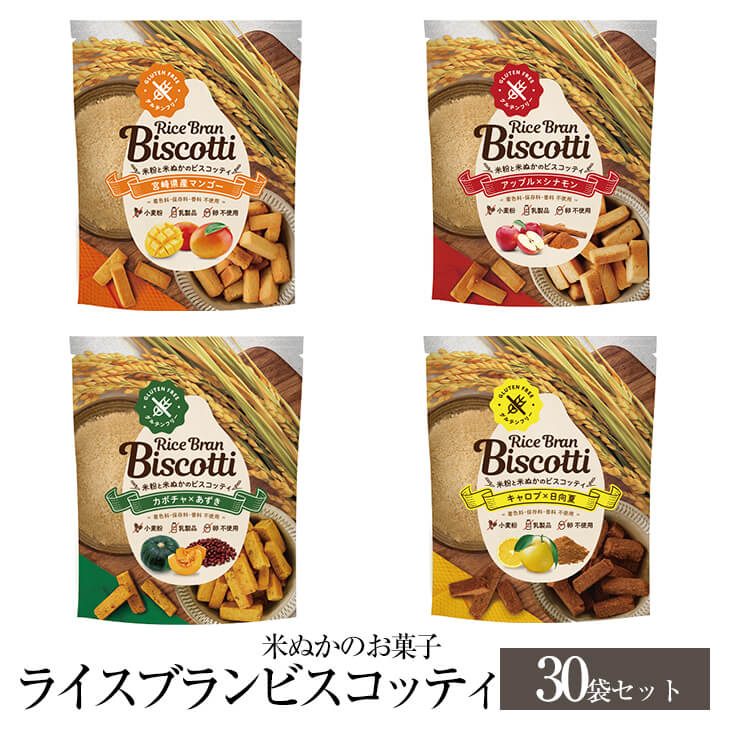 米ぬかのお菓子 ライスブランビスコッティ 40g × 30袋 宮崎県産マンゴー × アップル シナモン × かぼちゃ あずき × キャロブ 日向夏 グルテンフリー お菓子 おかし 焼き菓子 セット 健康 美容 国産 九州産 宮崎産 プレゼント 送料無料 高千穂ムラたび かごしまや