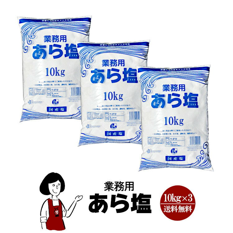 | 業務用 あら塩<チャック付> 10kg×3袋(計30kg)/ 宅配便 送料無料 塩 ソルト 調味料 海塩 岡山県産 粗塩 漬物 梅干し 天ぷら パスタ 魚介料理 肉料理 BBQ 盛り塩 こわけや | |