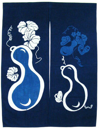日本和風インテリア レイアウト海外向けおみやげ 徳島県天然藍染のれん 縁起物瓢箪暖簾