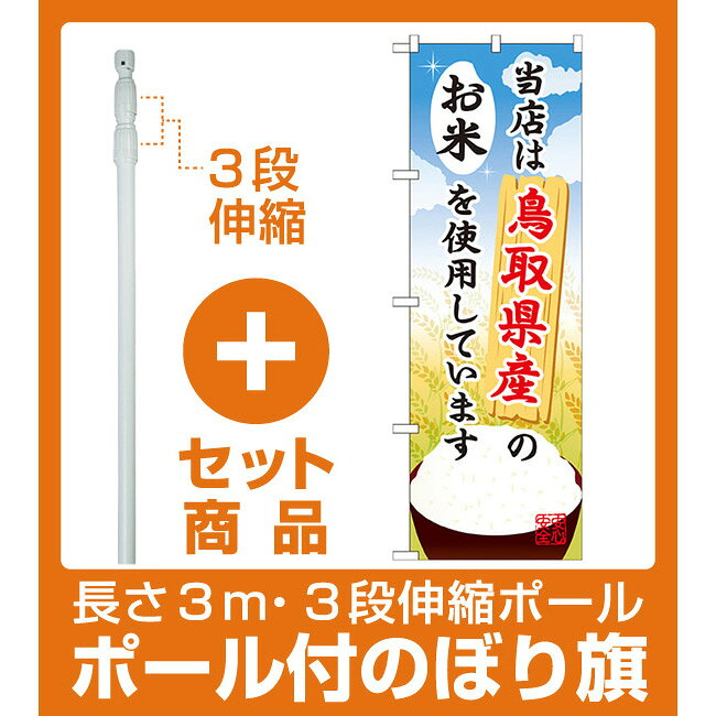 | 【セット商品】3m・3段伸縮のぼりポール(竿)付 ご当地のぼり旗 鳥取県産 内容:お米 (SNB-923) | |