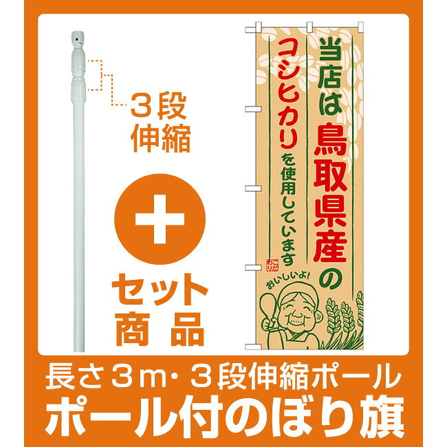 | 【セット商品】3m・3段伸縮のぼりポール(竿)付 ご当地のぼり旗 鳥取県産 内容:コシヒカリ (SNB-924) | |