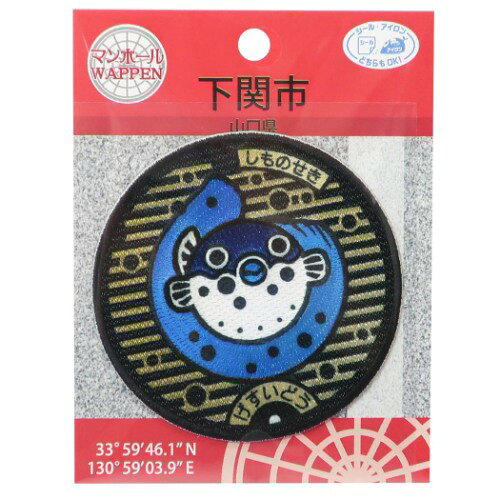 山口県下関市 ふぐ マンホール ワッペン アイロンパッチシール パイオニア 手芸用品 コレクション雑貨 メール便可